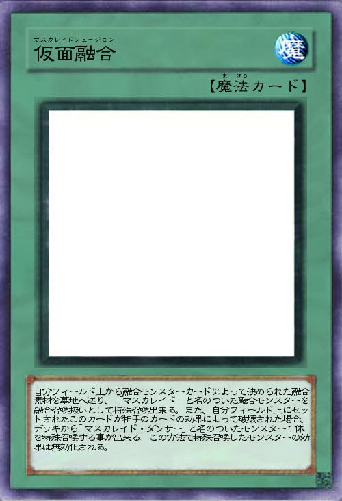 | 自分フィールド上から融合モンスターカードによって決められた融合素材を墓地へ送り、「マスカレイド」と名のついた融合モンスターを融合召喚扱いとして特殊召喚出来る。また、自分フィールド上にセットされたこのカードが相手のカードの効果によって破壊された場合、デッキから「マスカレイド・ダンサー」と名のついたモンスター1体を特殊召喚する事が出来る。この方法で特殊召喚したモンスターの効果は無効化される。 | |||