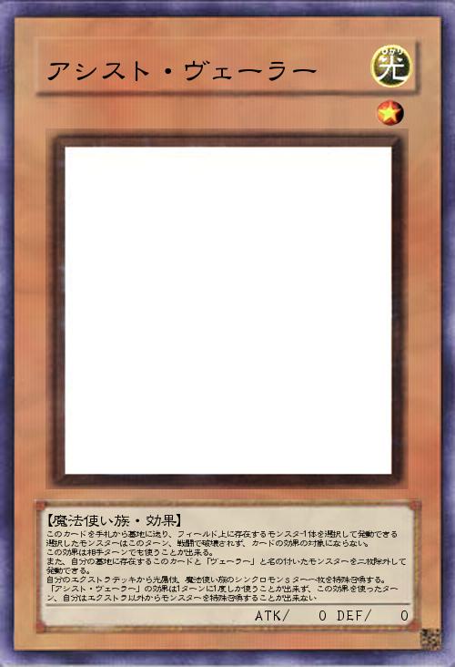 このカードを手札から墓地に送り、フィールド上に存在するモンスタ-1体を選択して発動できる 選択したモンスターはこのターン、戦闘で破壊されず、カードの効果の対象にならない。 この効果は相手ターンでも使うことが出来る。 また、自分の墓地に存在するこのカードと「ヴェーラー」と名の付いたモンスターを二枚除外して発動できる。 自分のエクストラデッキから光属性、魔法使い族のシンクロモンsター一枚を特殊召喚する。 「アシスト・ヴェーラー」の効果は1ターンに1度しか使うことが出来ず、この効果を使ったターン、自分はエクストラ以外からモンスターを特殊召喚することが出来ない |