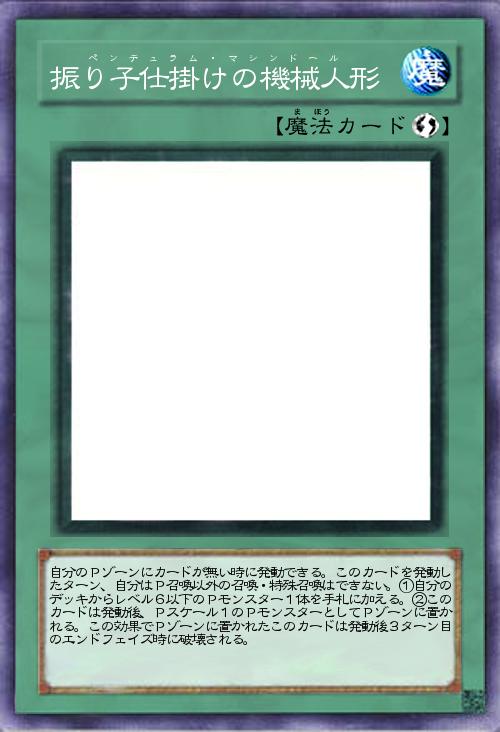 「まだこのサイトにPモンスターのカード実装されてないので。そのうちシンクロモンスターのPモンスターとか来・・・ないか」(2014-04-17 21:23)