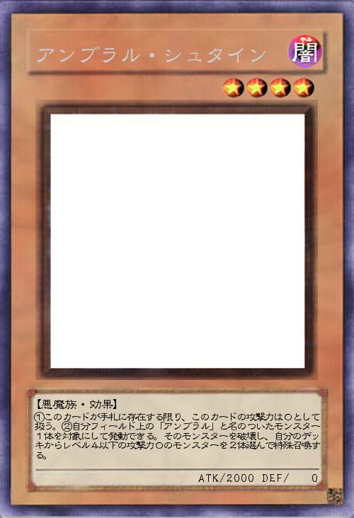 | ①このカードが手札に存在する限り、このカードの攻撃力は0として扱う。②自分フィールド上の「アンブラル」と名のついたモンスター1体を対象にして発動できる。そのモンスターを破壊し、自分のデッキからレベル4以下の攻撃力0のモンスターを2体選んで特殊召喚する。 | |||