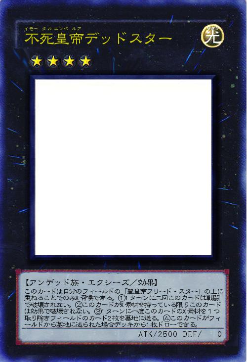 | このカードは自分のフィールドの「聖皇帝フリード・スター」の上に重ねることでのみX召喚できる。①1ターンに二回このカードは戦闘で破壊されない。②このカードがX素材を持っている限りこのカードは効果で破壊されない。③1ターンに一度このカードのX素材を1つ取り除きフィールドのカード2枚を墓地に送る。④このカードがフィールドから墓地に送られた場合デッキから1枚ドローできる。 | |||