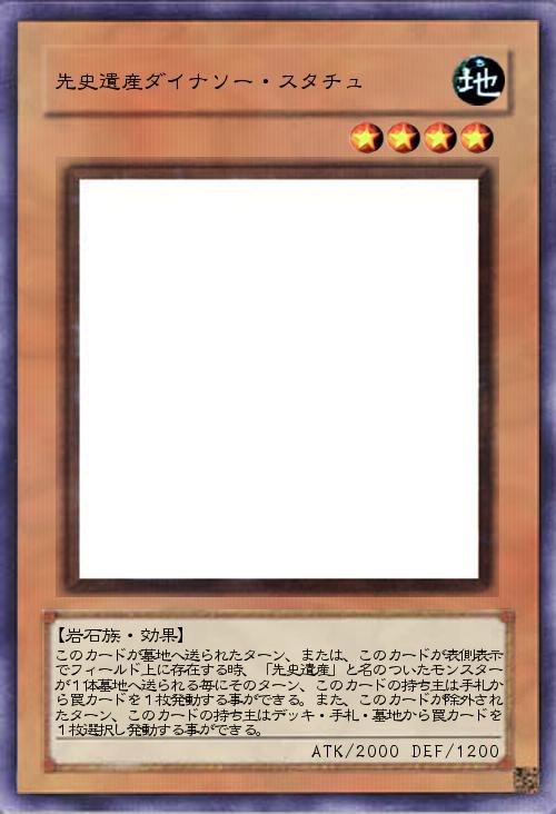 | このカードが墓地へ送られたターン、または、このカードが表側表示でフィールド上に存在する時、「先史遺産」と名のついたモンスターが1体墓地へ送られる毎にそのターン、このカードの持ち主は手札から罠カードを1枚発動する事ができる。また、このカードが除外されたターン、このカードの持ち主はデッキ・手札・墓地から罠カードを1枚選択し発動する事ができる。 | |||