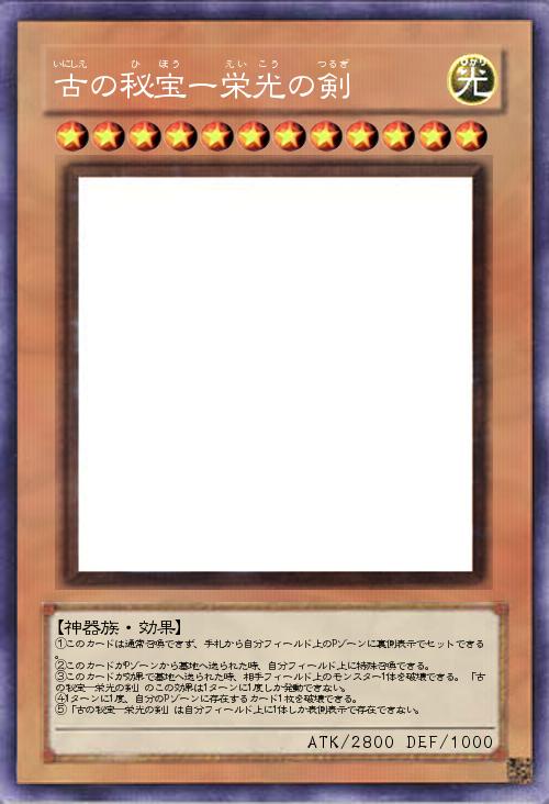 ①このカードは通常召喚できず、手札から自分フィールド上のPゾーンに裏側表示でセットできる。 ②このカードがPゾーンから墓地へ送られた時、自分フィールド上に特殊召喚できる。 ③このカードが効果で墓地へ送られた時、相手フィールド上のモンスター1体を破壊できる。「古の秘宝―栄光の剣」のこの効果は1ターンに1度しか発動できない。 ④1ターンに1度、自分のPゾーンに存在するカード1枚を破壊できる。 ⑤「古の秘宝―栄光の剣」は自分フィールド上に1体しか表側表示で存在できない。 |