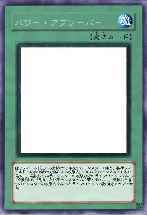 | 自分フィールド上に表側表示で存在するモンスター1体と、相手フィールド上に表側表示で存在する攻撃力2000以上のモンスター1体を選択し、選択した相手モンスターの攻撃力分のライフポイントを払って発動する。選択した相手モンスターの攻撃力を0にし、選択した自分のモンスターの攻撃力を払ったライフポイントの数値分アップさせる。 | |||