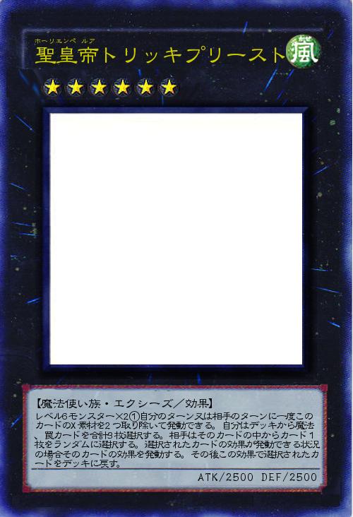 | レベル6モンスター×2①自分のターン又は相手のターンに一度このカードのX素材を2つ取り除いて発動できる。自分はデッキから魔法、罠カードを合計3枚選択する。相手はそのカードの中からカード1枚をランダムに選択する。選択されたカードの効果が発動できる状況の場合そのカードの効果を発動する。その後この効果で選択されたカードをデッキに戻す。 | |||