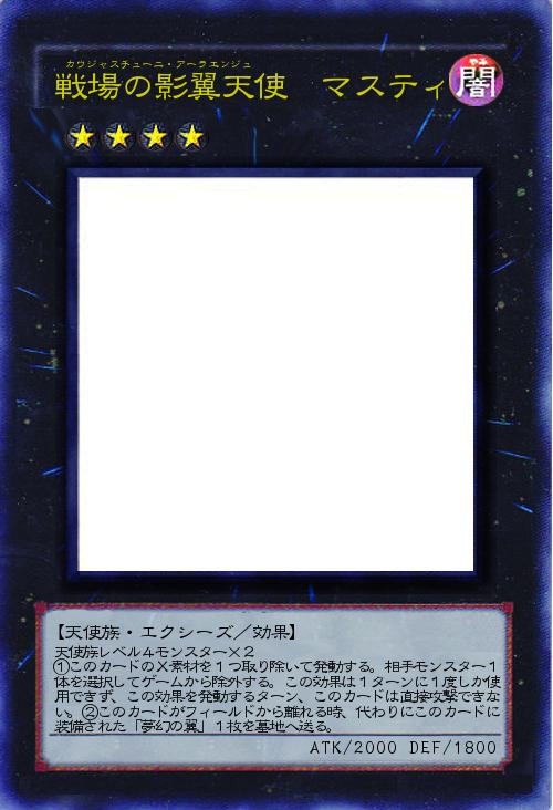 天使族レベル4モンスター×2 ①このカードのX素材を1つ取り除いて発動する。相手モンスター1体を選択してゲームから除外する。この効果は1ターンに1度しか使用できず、この効果を発動するターン、このカードは直接攻撃できない。②このカードがフィールドから離れる時、代わりにこのカードに装備された「夢幻の翼」1枚を墓地へ送る。 |