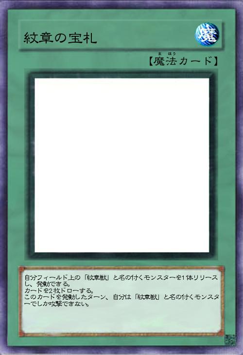 自分フィールド上の「紋章獣」と名の付くモンスターを1体リリースし、発動できる。 カードを2枚ドローする。 このカードを発動したターン、自分は「紋章獣」と名の付くモンスターでしか攻撃できない。 |