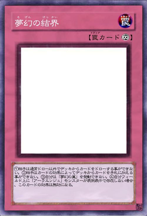 | ①相手は通常ドロー以外でデッキからカードをドローする事ができない。②相手はカードの効果によってデッキからカードを手札に加える事ができない。③自分は「夢幻の翼」を発動できない。④自分フィールド上に「アーラエンジュ」モンスターが表側表示で存在しない場合、このカードの効果は無効になる。 | |||