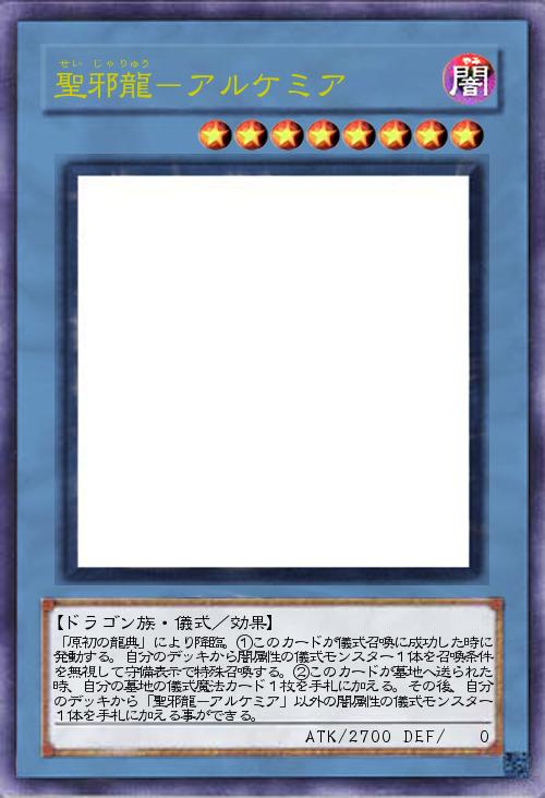 | 「原初の龍典」により降臨。①このカードが儀式召喚に成功した時に発動する。自分のデッキから闇属性の儀式モンスター1体を召喚条件を無視して守備表示で特殊召喚する。②このカードが墓地へ送られた時、自分の墓地の儀式魔法カード1枚を手札に加える。その後、自分のデッキから「聖邪龍-アルケミア」以外の闇属性の儀式モンスター1体を手札に加える事ができる。 | |||