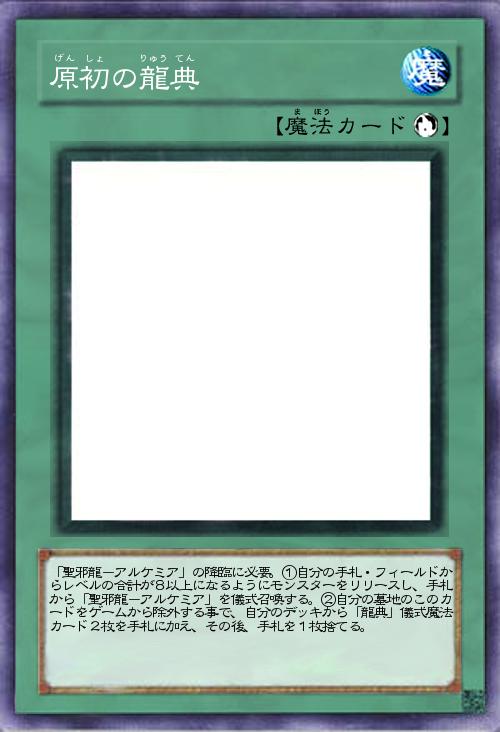 | 「聖邪龍-アルケミア」の降臨に必要。①自分の手札・フィールドからレベルの合計が8以上になるようにモンスターをリリースし、手札から「聖邪龍-アルケミア」を儀式召喚する。②自分の墓地のこのカードをゲームから除外する事で、自分のデッキから「龍典」儀式魔法カード2枚を手札に加え、その後、手札を1枚捨てる。 | |||