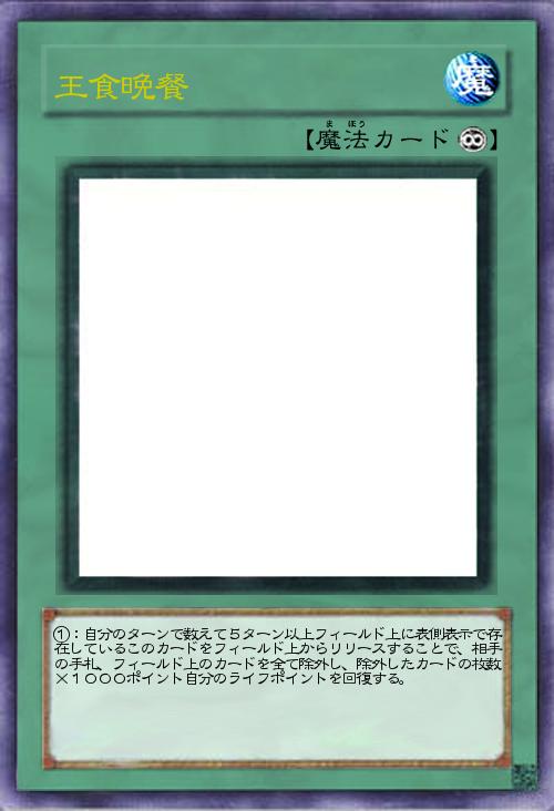 | ①:自分のターンで数えて5ターン以上フィールド上に表側表示で存在しているこのカードをフィールド上からリリースすることで、相手の手札、フィールド上のカードを全て除外し、除外したカードの枚数×1000ポイント自分のライフポイントを回復する。 | |||