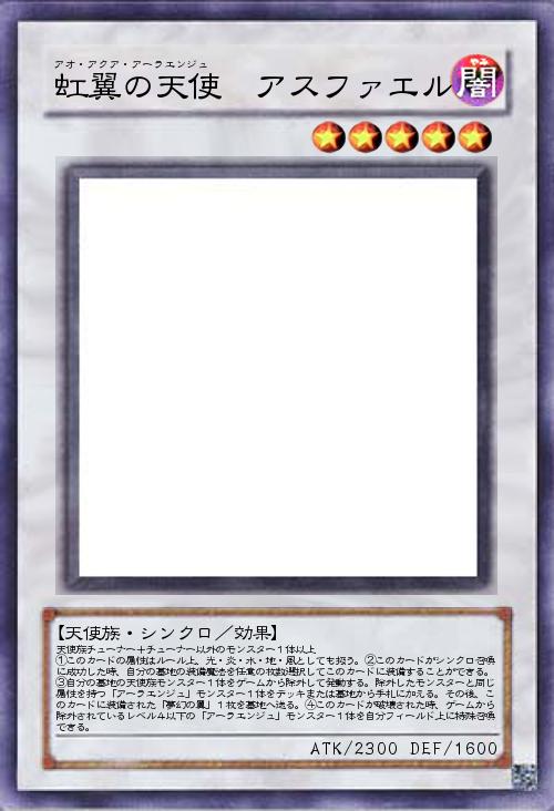 天使族チューナー+チューナー以外のモンスター1体以上 ①このカードの属性はルール上、光・炎・水・地・風としても扱う。②このカードがシンクロ召喚に成功した時、自分の墓地の装備魔法を任意の枚数選択してこのカードに装備することができる。③自分の墓地の天使族モンスター1体をゲームから除外して発動する。除外したモンスターと同じ属性を持つ「アーラエンジュ」モンスター1体をデッキまたは墓地から手札に加える。その後、このカードに装備された「夢幻の翼」1枚を墓地へ送る。④このカードが破壊された時、ゲームから除外されているレベル4以下の「アーラエンジュ」モンスター1体を自分フィールド上に特殊召喚できる。 |