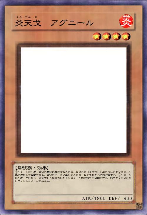 | ①1ターンに1度、自分の墓地に存在するこのカード以外の「炎天戈」と名のついたモンスター1体を選択して発動できる。自分のデッキに戻してこのカードを手札から特殊召喚する。②1ターンに1度、手札から「炎天戈」と名のついたモンスター1体を捨てて発動できる。相手ライフに600ポイントダメージを与える。 | |||