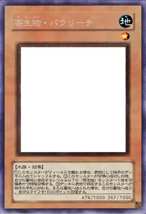 | ①このモンスターがフィールドを離れる場合、表側にして相手のデッキに入れてシャッフルする。②このモンスターが召喚に成功した時、自分の墓地に存在するレベル4以下の「寄生物」モンスター1体を守備表示で特殊召喚する。③デッキに表側で存在するこのモンスターが相手の手札に加わる、または墓地へ送られた場合、自分の墓地へ送り、自分はライフを1500ポイント回復する。 | |||