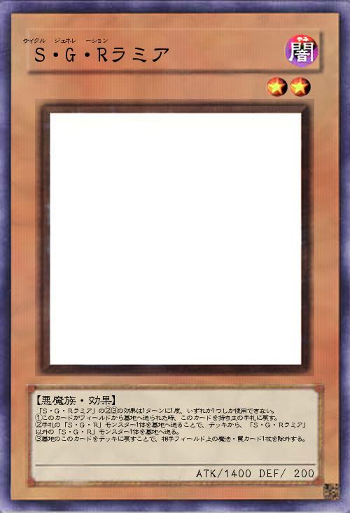 「S・G・Rラミア」の②③の効果は1ターンに1度、いずれか1つしか使用できない。 ①このカードがフィールドから墓地へ送られた時、このカードを持ち主の手札に戻す。 ②手札の「S・G・R」モンスター1体を墓地へ送ることで、デッキから、「S・G・Rラミア」以外の「S・G・R」モンスター1体を墓地へ送る。 ③墓地のこのカードをデッキに戻すことで、相手フィールド上の魔法・罠カード1枚を除外する。 |