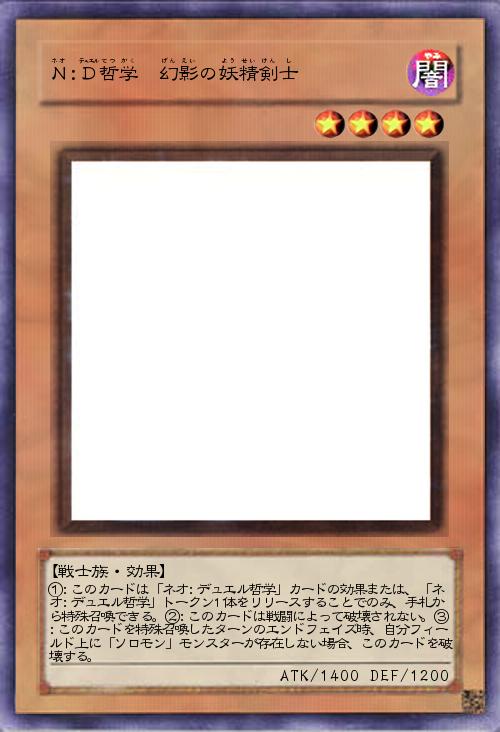 ①:このカードは「ネオ:デュエル哲学」カードの効果または、「ネオ:デュエル哲学」トークン1体をリリースすることでのみ、手札から特殊召喚できる。②:このカードは戦闘によって破壊されない。③:このカードを特殊召喚したターンのエンドフェイズ時、自分フィールド上に「ソロモン」モンスターが存在しない場合、このカードを破壊する。 |