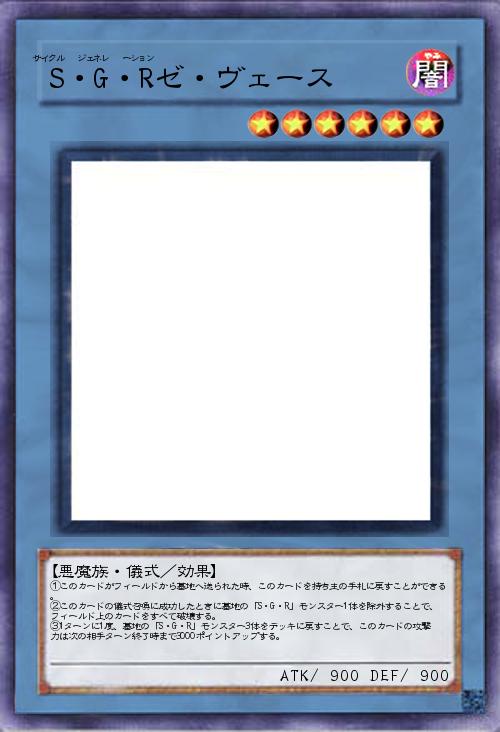 ①このカードがフィールドから墓地へ送られた時、このカードを持ち主の手札に戻すことができる。 ②このカードの儀式召喚に成功したときに墓地の「S・G・R」モンスター1体を除外することで、フィールド上のカードをすべて破壊する。 ③1ターンに1度、墓地の「S・G・R」モンスター3体をデッキに戻すことで、このカードの攻撃力は次の相手ターン終了時まで3000ポイントアップする。 |