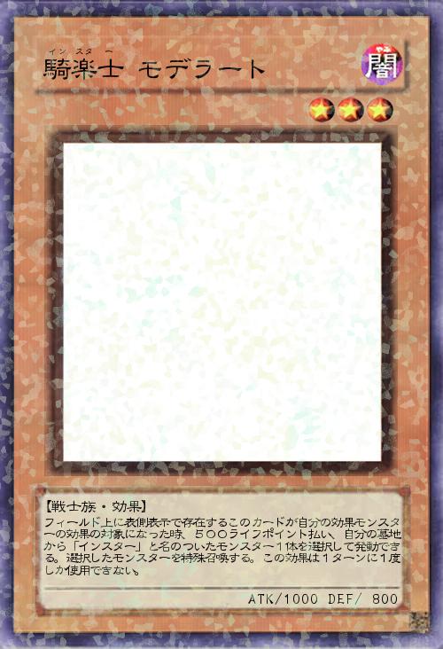 | フィールド上に表側表示で存在するこのカードが自分の効果モンスターの効果の対象になった時、500ライフポイント払い、自分の墓地から「インスター」と名のついたモンスター1体を選択して発動できる。選択したモンスターを特殊召喚する。この効果は1ターンに1度しか使用できない。 | |||