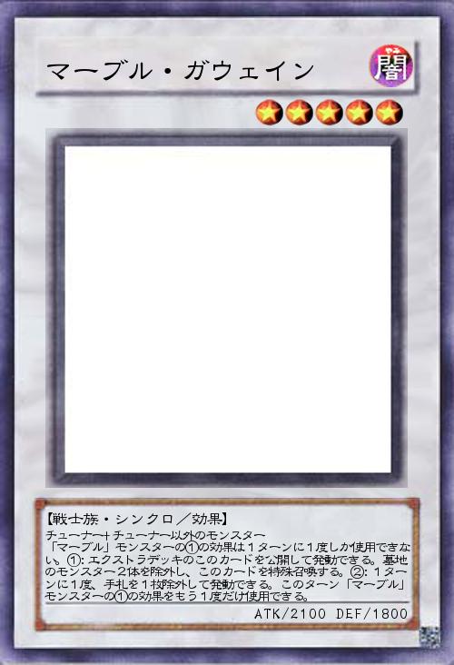 「オリジナルカテゴリ「マーブル」第4弾。召喚が容易なレベル5シンクロってだけで規制されそうな気がしないでもない。」(2014-07-04 16:42)