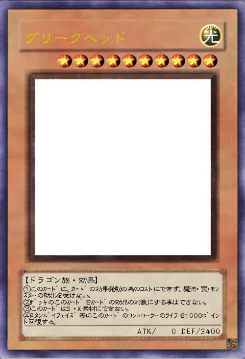 ①このカードは、カードの効果発動の為のコストにできず、魔法・罠・モンスターの効果を受けない。 ②デッキのこのカードをカードの効果の対象にする事はできない。 ③このカードはS・X素材にできない。 ④スタンバイフェイズ毎にこのカードのコントローラーのライフを1000ポイント回復する。 |