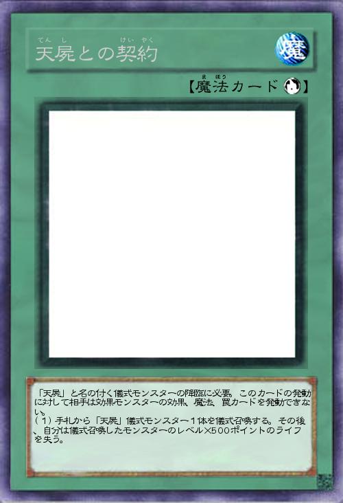 「天屍」と名の付く儀式モンスターの降臨に必要。このカードの発動に対して相手は効果モンスターの効果、魔法、罠カードを発動できない。 (1)手札から「天屍」儀式モンスター1体を儀式召喚する。その後、自分は儀式召喚したモンスターのレベル×500ポイントのライフを失う。 |