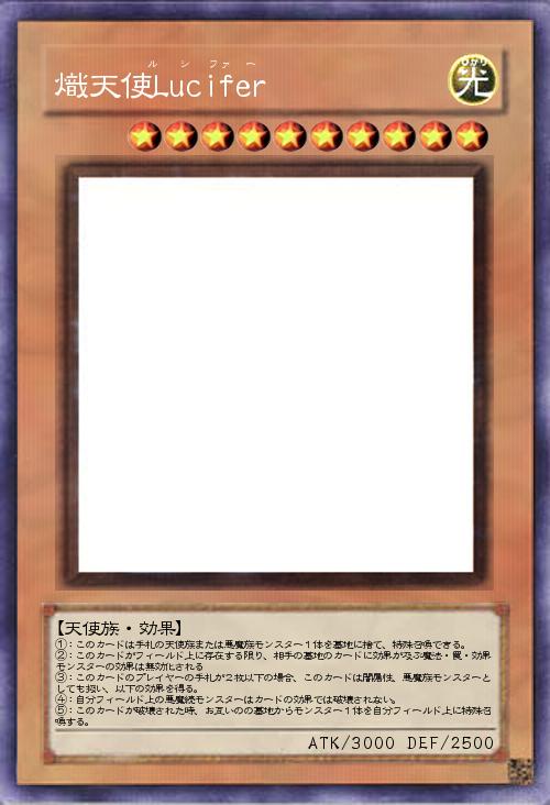 ①:このカードは手札の天使族または悪魔族モンスター1体を墓地に捨て、特殊召喚できる。 ②:このカードがフィールド上に存在する限り、相手の墓地のカードに効果が及ぶ魔法・罠・効果モンスターの効果は無効化される ③:このカードのプレイヤーの手札が2枚以下の場合、このカードは闇属性、悪魔族モンスターとしても扱い、以下の効果を得る。 ④:自分フィールド上の悪魔続モンスターはカードの効果では破壊されない。 ⑤:このカードが破壊された時、お互いのの墓地からモンスター1体を自分フィールド上に特殊召喚する。 |