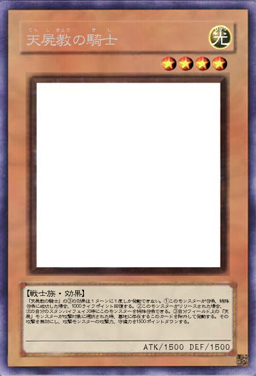 | 「天屍教の騎士」の③の効果は1ターンに1度しか発動できない。①このモンスターが召喚、特殊召喚に成功した場合、1000ライフポイント回復する。②このモンスターがリリースされた場合、次の自分のスタンバイフェイズ時にこのモンスターを特殊召喚できる。③自分フィールド上の「天屍」モンスターが攻撃対象に選択された時、墓地に存在するこのカードを除外して発動する。その攻撃を無効にし、攻撃モンスターの攻撃力、守備力を1500ポイントダウンする。 | |||