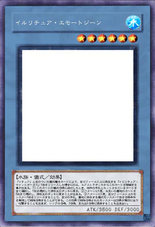 | 「リチュア」と名のついた儀式魔法カードにより、自分フィールド上に存在する「イビリチュア・マインドオーガス」1体をリリースした場合にのみ、エクストラデッキからこのカードを降臨する事が出来る。①:このカードの儀式召喚に成功したとき、相手の手札とセットされているカードを全て確認し、1枚を選択して持ち主のデッキに戻す。②:1ターンに1度、お互いの墓地のカードを5枚まで選択し、持ち主のデッキに戻すことが出来る。③:1ターンに1度、自分フィールド上のモンスター1体をリリースすることで、自分の手札、墓地に存在する儀式モンスター1体を召喚条件を無視して特殊召喚することができる。この効果で特殊召喚されたモンスターは効果が無効になり、攻撃することも出来ず、シンクロ召喚、S召喚、またはX召喚に使用することも出来ない。 | |||