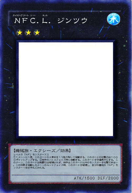 レベル3「NF」モンスター×2 ①1ターンに1度、このカードのX素材を1つ取り除いて発動する。このカードの攻撃力は1000ポイントアップする。②相手のバトルフェイズ時に発動する。このカードを守備表示にする。このターン、このカードは戦闘では破壊されず、相手はこのカード以外のモンスターを攻撃できない。この効果を発動したターンのエンドフェイズ時、このカードを破壊し、自分の墓地の「NF」モンスター1体を手札に加える。 |