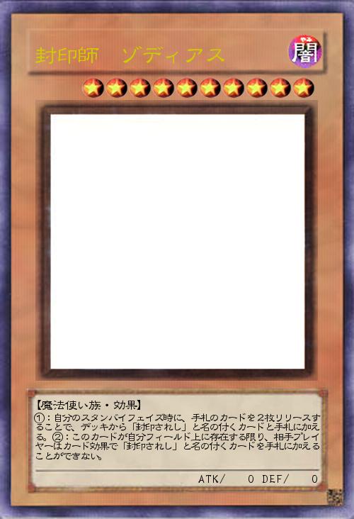 | ①:自分のスタンバイフェイズ時に、手札のカードを2枚リリースすることで、デッキから「封印されし」と名の付くカードと手札に加える。②:このカードが自分フィールド上に存在する限り、相手プレイヤーはカード効果で「封印されし」と名の付くカードを手札に加えることができない。 | |||