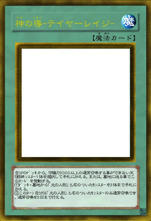 自分のデッキから、守備力3000以上の通常召喚する事ができない天使族モンスター1体を選択して手札に加える、または、墓地に送る事でこのカードを発動する。 ①デッキ・墓地から「光の人形」と名のついたモンスターを3体まで手札に加える。 ②このターン自分は「光の人形」と名のついたモンスターのみ通常召喚でき、通常召喚を3回まで行える。 |