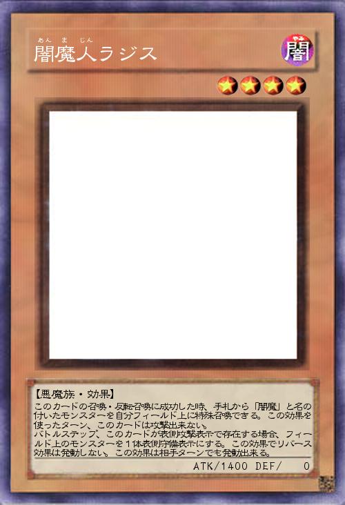 このカードの召喚・反転召喚に成功した時、手札から「闇魔」と名の付いたモンスターを自分フィールド上に特殊召喚できる。この効果を使ったターン、このカードは攻撃出来ない。 バトルステップ、このカードが表側攻撃表示で存在する場合、フィールド上のモンスターを1体表側守備表示にする。この効果でリバース効果は発動しない。この効果は相手ターンでも発動出来る。 |