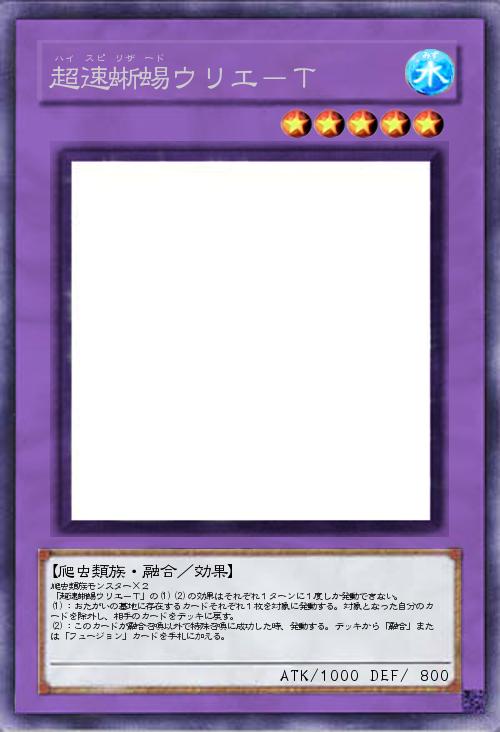 爬虫類族モンスター×2 「超速蜥蜴ウリエ-T」の(1)(2)の効果はそれぞれ1ターンに1度しか発動できない。 (1):おたがいの墓地に存在するカードそれぞれ1枚を対象に発動する。対象となった自分のカードを除外し、相手のカードをデッキに戻す。 (2):このカードが融合召喚以外で特殊召喚に成功した時、発動する。デッキから「融合」または「フュージョン」カードを手札に加える。 |