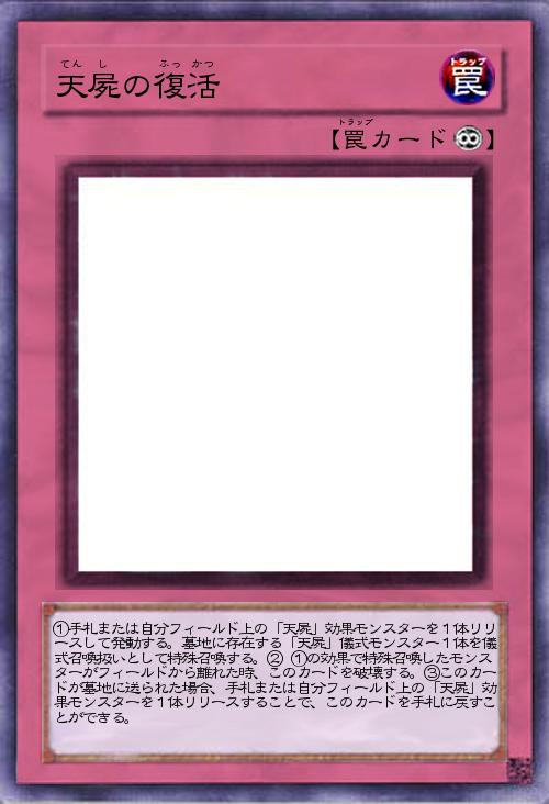 | ①手札または自分フィールド上の「天屍」効果モンスターを1体リリースして発動する。墓地に存在する「天屍」儀式モンスター1体を儀式召喚扱いとして特殊召喚する。② ①の効果で特殊召喚したモンスターがフィールドから離れた時、このカードを破壊する。③このカードが墓地に送られた場合、手札または自分フィールド上の「天屍」効果モンスターを1体リリースすることで、このカードを手札に戻すことができる。 | |||