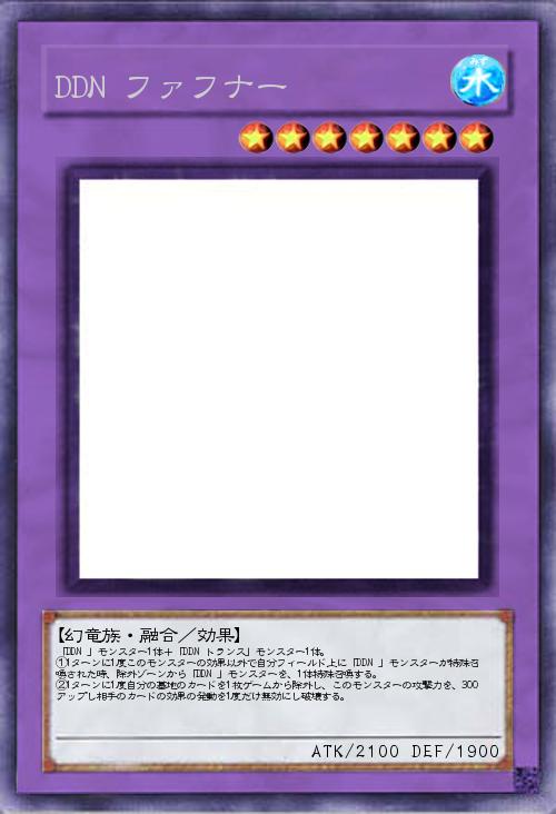 「DDN 」モンスター1体+「DDN トランス」モンスター1体。 ①1ターンに1度このモンスターの効果以外で自分フィールド上に「DDN 」モンスターが特殊召喚された時、除外ゾーンから「DDN 」モンスターを、1体特殊召喚する。 ②1ターンに1度自分の墓地のカードを1枚ゲームから除外し、このモンスターの攻撃力を、300アップし相手のカードの効果の発動を1度だけ無効にし破壊する。 |