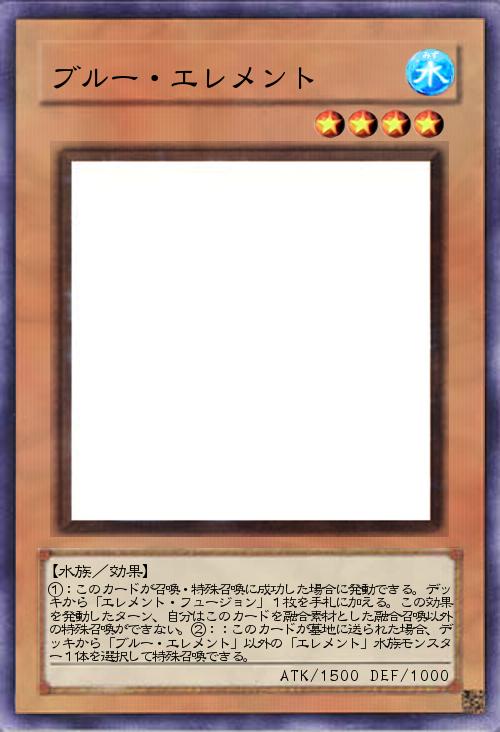 自身の効果と、「エレメント・フュージョン」の効果により融合召喚には簡単に繋げられると思います。ブルー・エレメント以外の水属性も、勿論考えております。こうご期待。」(2014-08-14 22:45)