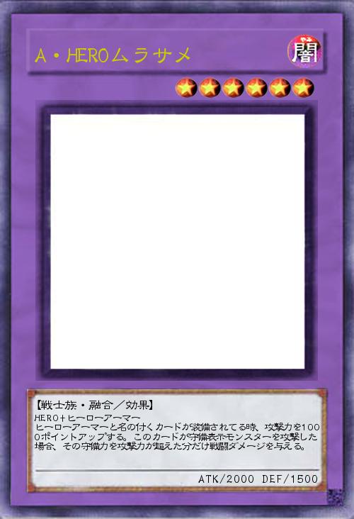 HERO+ヒーローアーマー ヒーローアーマーと名の付くカードが装備されてる時、攻撃力を1000ポイントアップする。このカードが守備表示モンスターを攻撃した場合、その守備力を攻撃力が超えた分だけ戦闘ダメージを与える。 |
