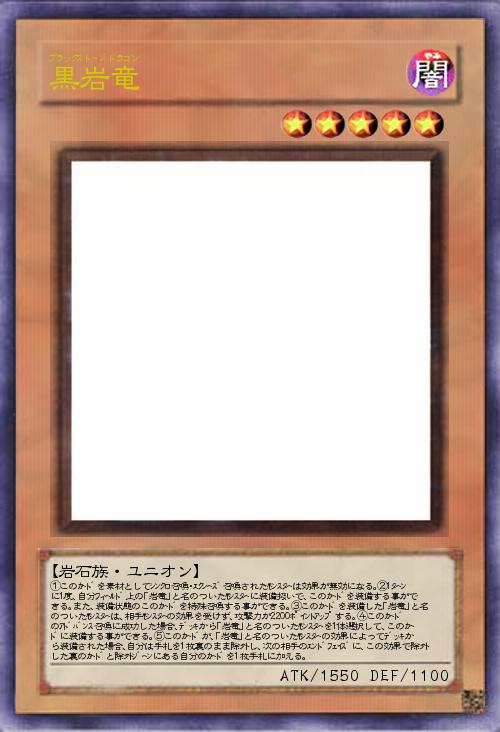 | ①このカードを素材としてシンクロ召喚・エクシーズ召喚されたモンスターは効果が無効になる。②1ターンに1度、自分フィールド上の「岩竜」と名のついたモンスターに装備扱いで、このカードを装備する事ができる。また、装備状態のこのカードを特殊召喚する事ができる。③このカードを装備した「岩竜」と名のついたモンスターは、相手モンスターの効果を受けず、攻撃力が2200ポイントアップする。④このカードのアドバンス召喚に成功した場合、デッキから「岩竜」と名のついたモンスターを1体選択して、このカードに装備する事ができる。⑤このカードが、「岩竜」と名のついたモンスターの効果によってデッキから装備された場合、自分は手札を1枚裏のまま除外し、次の相手のエンドフェイズに、この効果で除外した裏のカードと除外ゾーンにある自分のカードを1枚手札に加える。 | |||