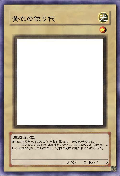 「黄衣の依り代。適当に繰り出すだけでも攻撃力2000のアタッカーになるとかならないとか。余談ですが元ネタはクトゥルフ神話の一部となった黄衣の王です。文章は「デモンズソウル」などから引用しています。」(2014-08-19 08:31)