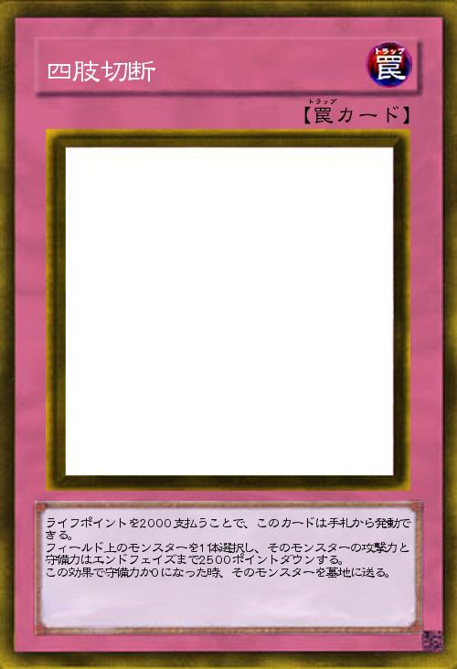 ただし除去として見ると本当に除去したいモンスターを除去できない可能性がある為、奈落の落とし穴や強制脱出装置に劣る。ピッチコストからの奇襲性で差別化したい所。」(2014-08-21 22:33)
