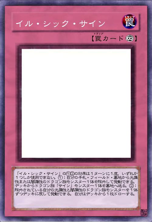 | 「イル・シック・サイン」の①②の効果は1ターンに1度、いずれか1つしか使用できない。①:自分の手札・フィールド・墓地から光属性または闇属性のドラゴン族モンスター1体を除外して発動できる。デッキからドラゴン族「サイン」モンスター1体を墓地へ送る。②:除外されている自分の光属性と闇属性のドラゴン族モンスターを1体ずつデッキに戻して発動できる。自分はデッキから1枚ドローする。 | |||