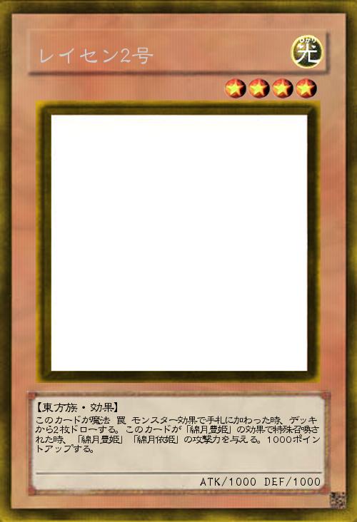 | このカードが魔法 罠 モンスター効果で手札に加わった時、デッキから2枚ドローする。このカードが「綿月豊姫」の効果で特殊召喚された時、「綿月豊姫」「綿月依姫」の攻撃力を与える。1000ポイントアップする。 | |||