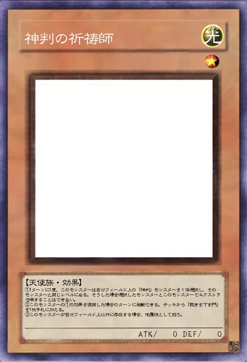 ①1ターンに1度、このモンスターは自分フィールド上の「神判」モンスターを1体選択し、そのモンスターと同じレベルになる。そうした場合選択したモンスターとこのモンスターでエクストラ召喚することはできない。 ②このモンスターの①の効果を使用した場合のターンに発動できる。デッキから「裁きを下す門」を1枚手札に加える。 ③このモンスターが自分フィールド上以外に存在する場合、地属性として扱う。 |