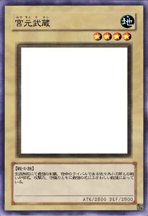 | 生涯無敗にて最強の剣豪。宿命のライバルである佐々木小次郎との戦いが有名。攻撃力、守備力ともに最強の名にふさわしい数値になっている。 | |||