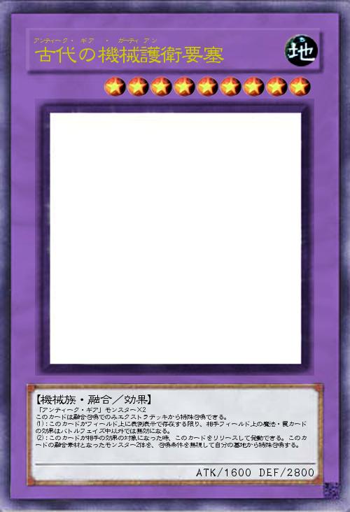 「アンティーク・ギア」モンスター×2 このカードは融合召喚でのみエクストラデッキから特殊召喚できる。 (1):このカードがフィールド上に表側表示で存在する限り、相手フィールド上の魔法・罠カードの効果はバトルフェイズ中以外では無効になる。 (2):このカードが相手の効果の対象になった時、このカードをリリースして発動できる。このカードの融合素材となったモンスター2体を、召喚条件を無視して自分の墓地から特殊召喚する。 |