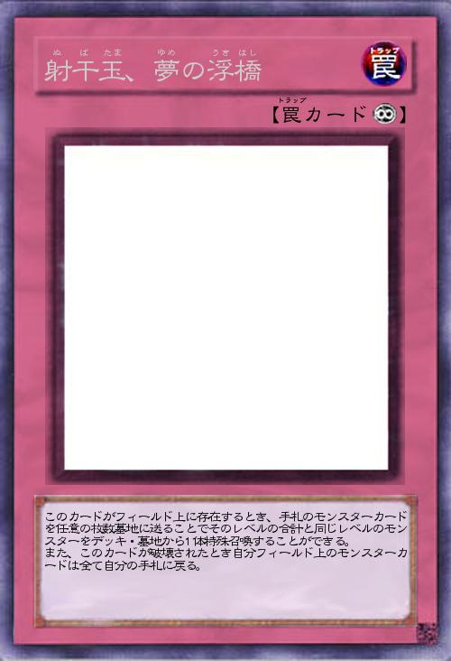 このカードがフィールド上に存在するとき、手札のモンスターカードを任意の枚数墓地に送ることでそのレベルの合計と同じレベルのモンスターをデッキ・墓地から1体特殊召喚することができる。 また、このカードが破壊されたとき自分フィールド上のモンスターカードは全て自分の手札に戻る。 |