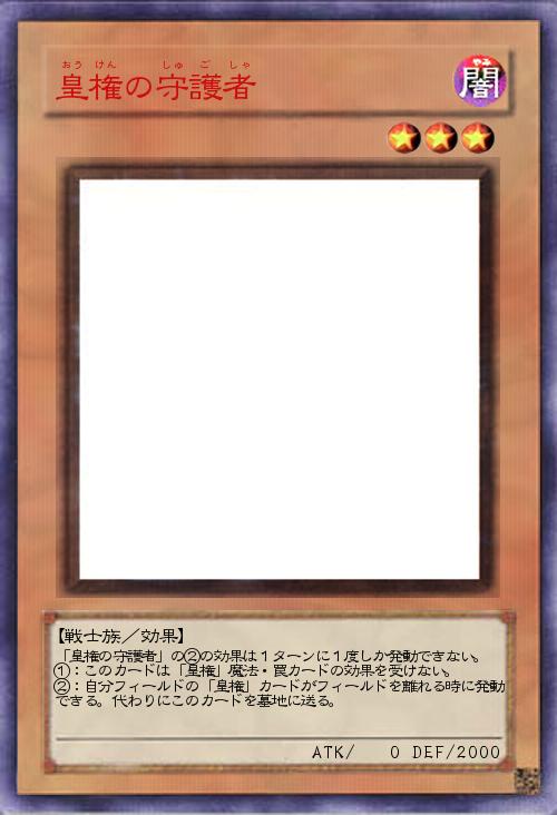 「皇権の守護者」の②の効果は1ターンに1度しか発動できない。 ①:このカードは「皇権」魔法・罠カードの効果を受けない。 ②:自分フィールドの「皇権」カードがフィールドを離れる時に発動できる。代わりにこのカードを墓地に送る。 |