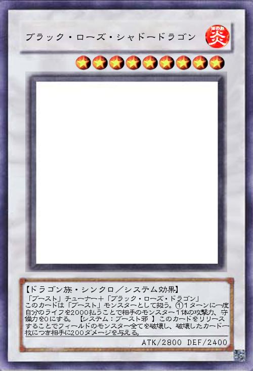 「ブースト」チューナー+「ブラック・ローズ・ドラゴン」 このカードは「ブースト」モンスターとして扱う。①1ターンに一度自分のライフを2000払うことで相手のモンスター1体の攻撃力、守備力を0にする。【システム:ブースト邪 】このカードをリリースすることでフィールドのモンスター全てを破壊し、破壊したカード一枚につき相手に200ダメージを与える。 |