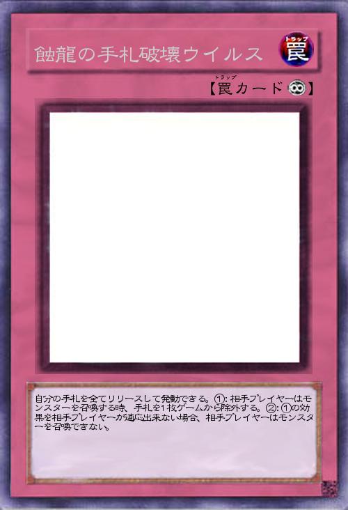 | 自分の手札を全てリリースして発動できる。①:相手プレイヤーはモンスターを召喚する時、手札を1枚ゲームから除外する。②:①の効果を相手プレイヤーが適応出来ない場合、相手プレイヤーはモンスターを召喚できない。 | |||