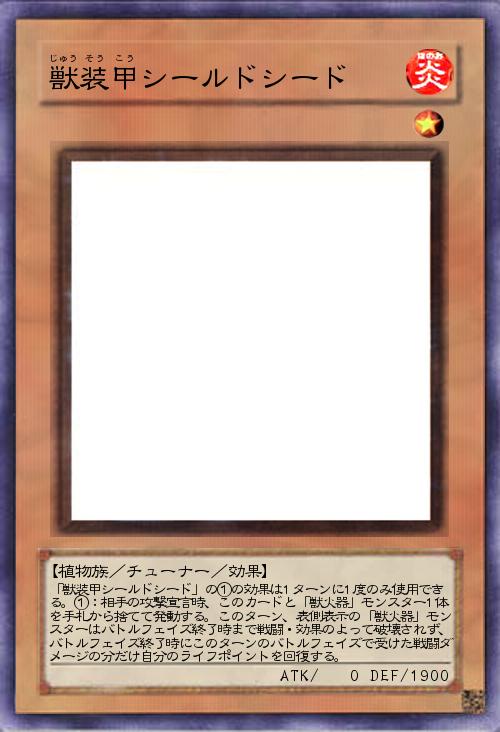 | 「獣装甲シールドシード」の①の効果は1ターンに1度のみ使用できる。①:相手の攻撃宣言時、このカードと「獣火器」モンスター1体を手札から捨てて発動する。このターン、表側表示の「獣火器」モンスターはバトルフェイズ終了時まで戦闘・効果のよって破壊されず、バトルフェイズ終了時にこのターンのバトルフェイズで受けた戦闘ダメージの分だけ自分のライフポイントを回復する。 | |||